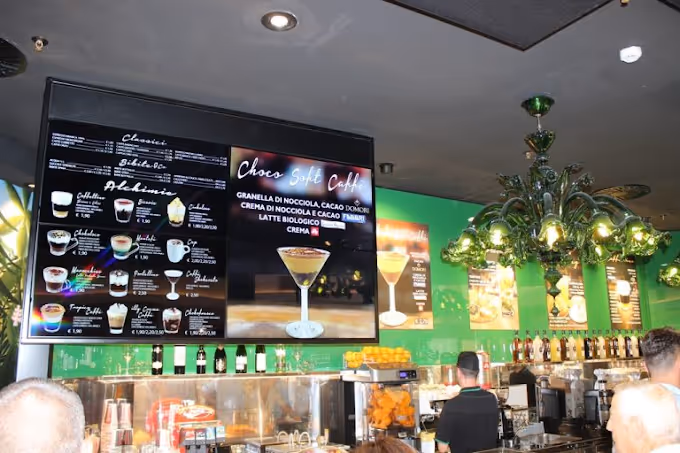 Comment un lustre classique de la tradition de Murano peut être revisité dans une touche moderne : Jasmine est réalisé en verre soufflé avec de larges nervures en rigadin, et a été réalisé dans la couleur originale vert bouteille pour meubler le restaurant Portello Caffé à Globo Busnago (Pavie). Projet de l'architecte Marco Lucchi (Riccione).