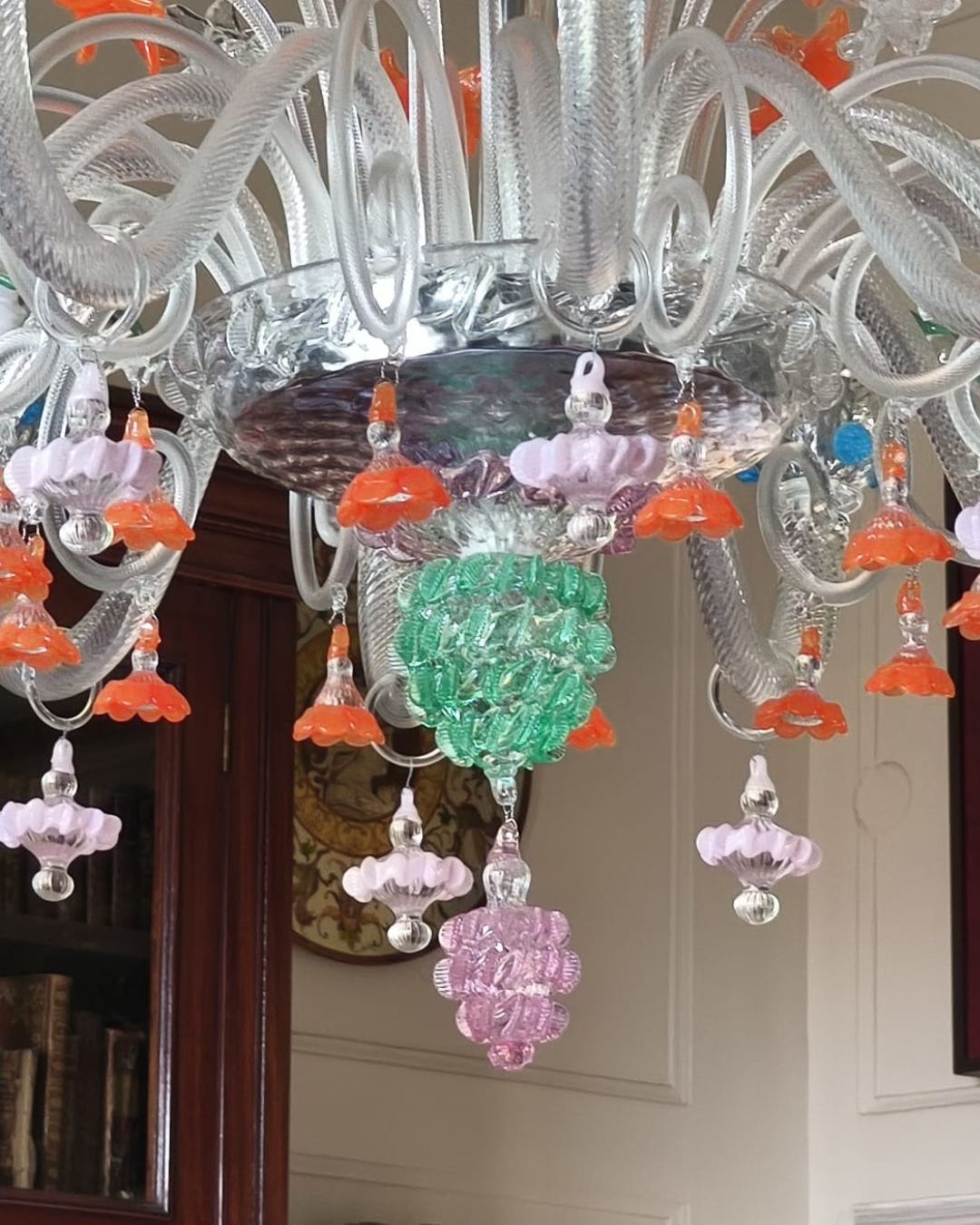 Un lampadario che interpreta la tradizione classica veneziana attraverso un progetto su misura: il modello Pavarotti, a motivi floreali, installato in una residenza privata a Verona.